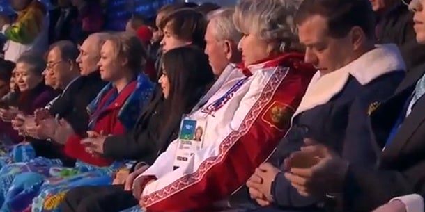 Der russische Regierungschef Dmitri Medwedew hat das Eröffnungsspektakel der Olympischen Winterspiele in Sotschi zumindest teilweise verschlafen und deswegen beißenden Spott auf sich gezogen. Ein auf YouTube platziertes Video zeigt Medwedew mit nach vorne geneigtem Kopf, geschlossenen Augen und über dem Bauch gefalteten Händen - kurz bevor Staatschef Wladimir Putin die Spiele offiziell eröffnete.