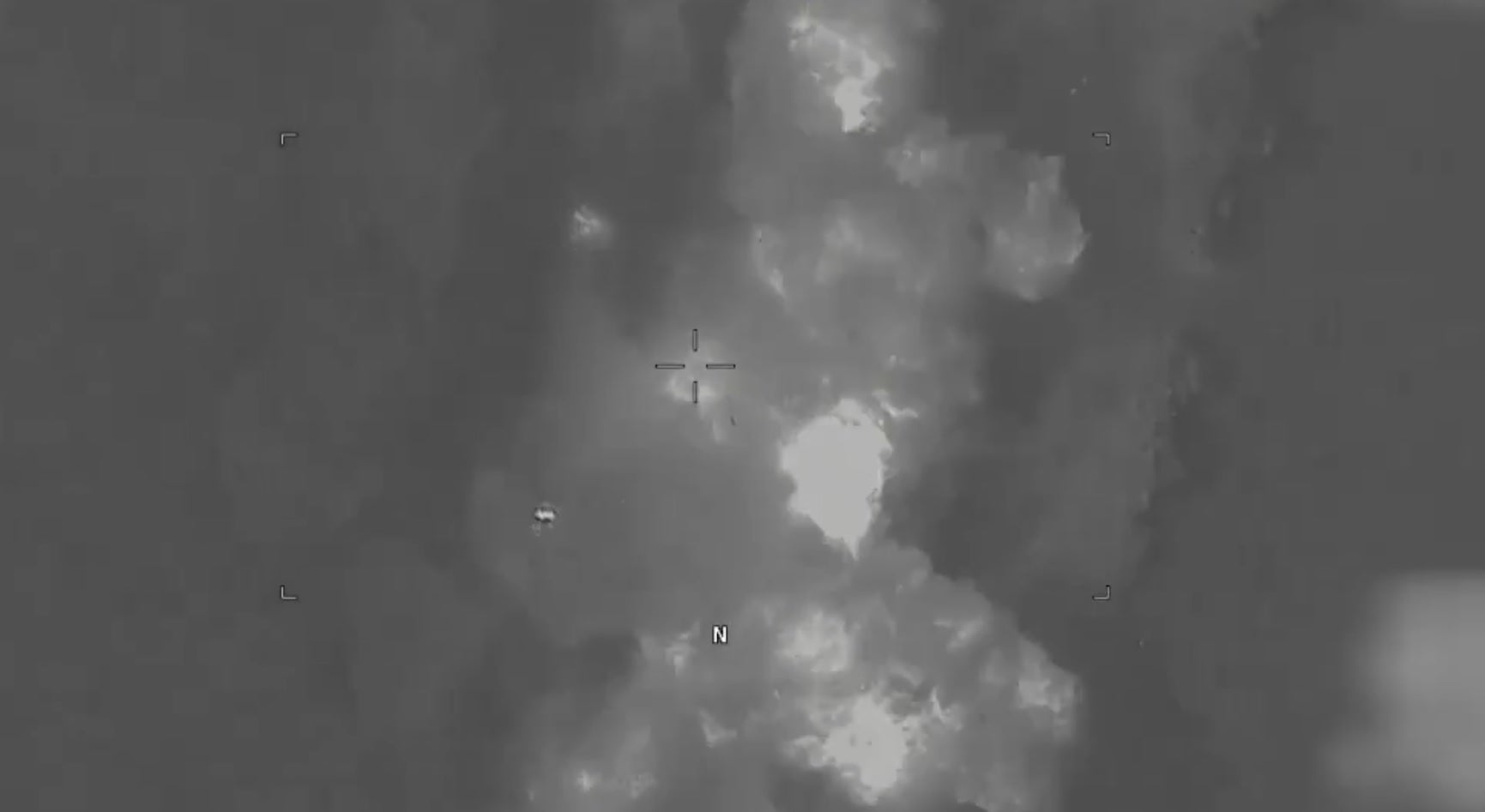 Die Schwarz-Weiß-Aufnahmen, die er am Freitag (Ortszeit) in seinem Onlinenetzwerk Truth Social veröffentlichte, ähnelten Bildern von Militärdrohnen und zeigten mehrere Dutzend Menschen, die in einem Kreis stehen. Es folgt Rauch, anschließend ist eine Einschlagstelle zu sehen.
