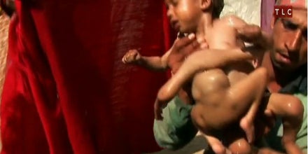 Dieser Zwilling saugte langsam das Blut und damit auch das Leben aus dem Körper des kleinen Rishabhs. Eine Operation rettete Rishabh jetzt das Leben, berichtet die "Sun". Nach diesem schockierenden Start ins Leben kann der Bub jetzt ohne Probleme mit seinen beiden älteren Brüdern spielen.