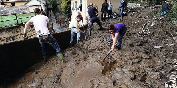Der Katastrophenalarm in Norditalien ist noch nicht vorbei: Die Bahnlinie Cervignano–Udine ist nach einem Erdrutsch unterbrochen. Friaul ist jedoch geringer betroffen als Ligurien und Toskana. Gesamtschaden: eine Milliarde.