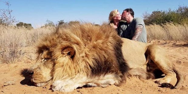 Großwildjäger sorgen mit Kuss-Foto vor totem Löwen für einen Shitstorm im Netz.