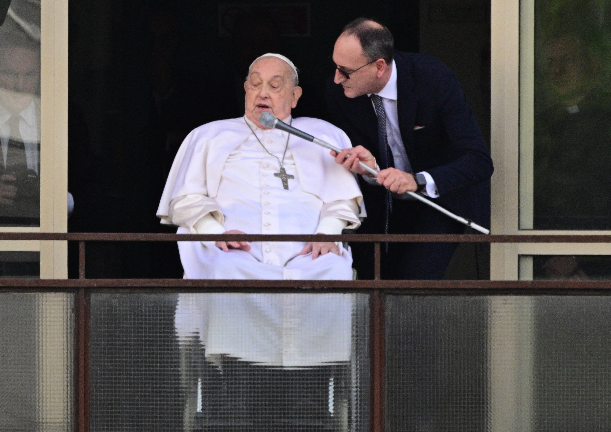 Wiederholt zeigte der Papst am Balkon den erhobenen Daumen, um zu signalisieren, dass es ihm gut gehe. Franziskus, der an einer doppelseitigen Lungenentzündung gelitten hatte, dankte mit gebrochenen Worten einer Frau, die auf dem Platz einen Strauß mit gelben Blumen hielt. Probleme beim Atmen deuteten sich an. Eine Minute lang blieb der Papst am Fenster. Nach der Segnung wurde er aus dem Spital entlassen. In einem weißen Auto fuhr der Papst zunächst zur Basilika Santa Maria Maggiore, um dort vor dem Bild der Muttergottes für seine Genesung zu danken. Danach soll er in das Gästehaus Santa Marta im Vatikan zurückkehren, wo er die Therapien allerdings fortsetzen muss. Auf dem Petersplatz versammelten sich Pilger, die auf die Rückkehr des Heiligen Vaters im Vatikan werteten.