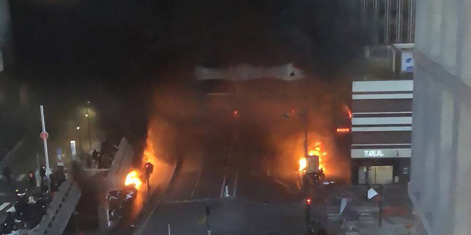 Brennende Mülltonnen und Motorroller im Stadtviertel Bercy.