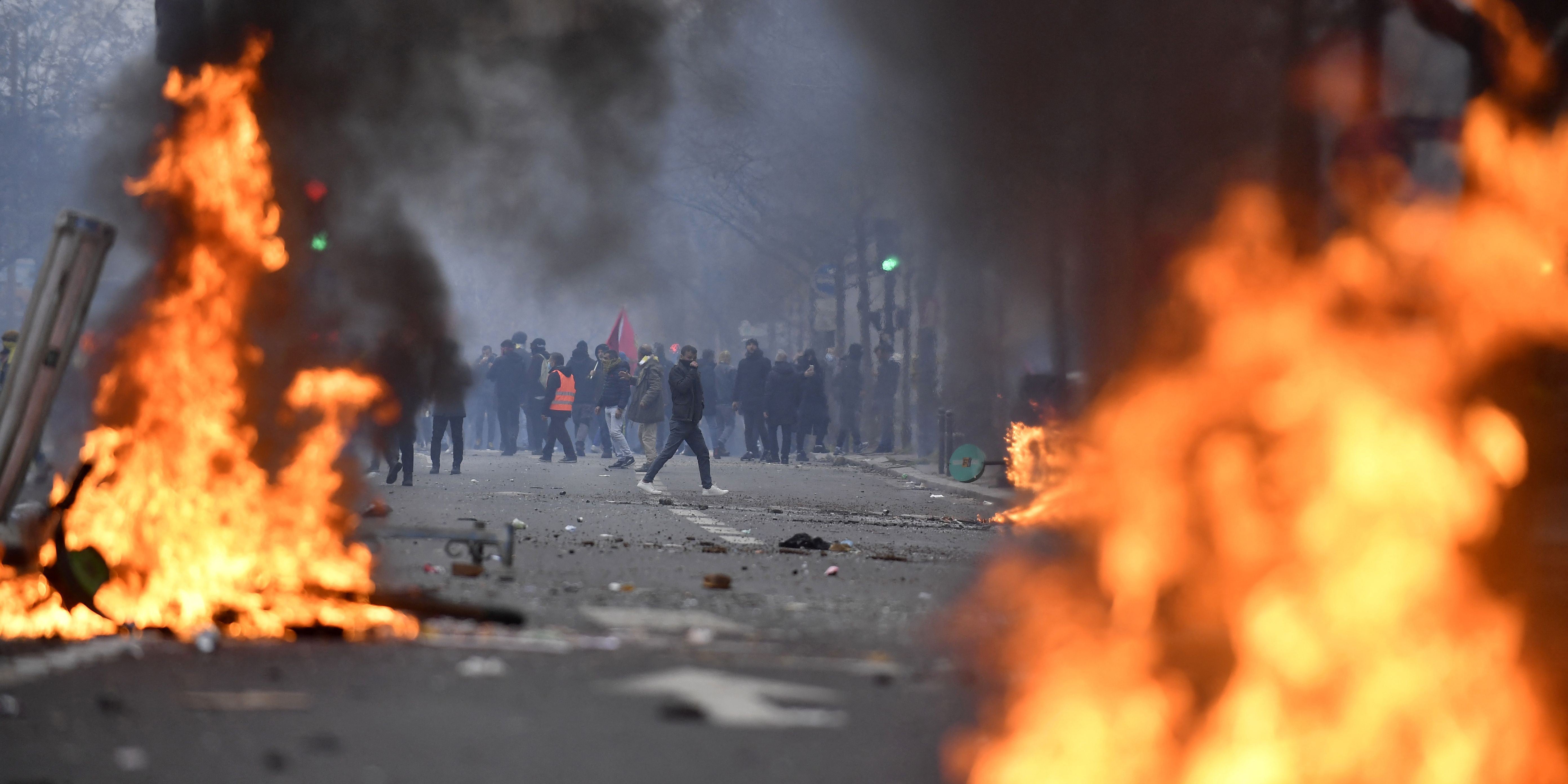 In der Nähe des Place de la République wurden Wurfgeschosse auf Ordnungskräfte geschleudert, diese antworteten mit Tränengas.