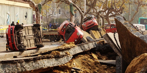 Ein Terroranschlag werde ausgeschlossen, teilte die Stadtregierung mit. Bilder im Internet zeigten schwere Zerstörungen. Autos wurden von schweren Steinbrocken und Geröll verschüttet und zum Teil völlig zerquetscht. Selbst Lastwagen waren umgekippt. Der Riss von der Explosion in der Erde war zum Teil metertief. Bei den Bergungsarbeiten mussten Bagger eingesetzt werden.