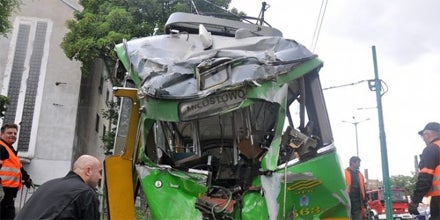 Beim Zusammenstoß zweier Straßenbahnen sind in Posen (Poznan) in Westpolen über 40 Menschen verletzt worden. Rund 20 Fahrgäste sind in Krankenhäuser eingeliefert worden,berichtet der Sender TVN24. Eine Tram war am Montag auf eine andere Straßenbahn mit voller Wucht aufgefahren, als diese plötzlich bremste. Der Fahrer wurde in seiner Kabine eingeklemmt. Die Retter mussten die Kabine aufschneiden, um den schwer verletzten Mann zu befreien. Die genaue Ursache des Unfalls ist unklar, Polizei und Verkehrsbetriebe ermitteln.