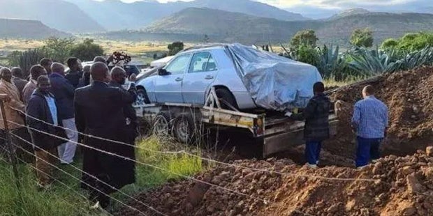 Den Mercedes benutzte er fortan auch als Büro, feilte im Auto an seinen Rede und empfing hier sogar Gäste. Kein Wunder also, dass Pitso auch im Mercedes begraben werden wollte. Seine letzte Reise trat der Politiker schließlich im weißen Anzug und mit einem Kabelbinder ans Lenkrad gebunden an.