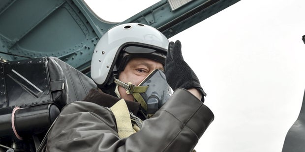 Der ukrainische Staatschef Petro Poroschenko hat seinen russischen Kollegen Wladimir Putin nachgeahmt und sich beim Flug in einem Kampfbomber filmen lassen. Ein von der ukrainischen Präsidentschaft am Mittwoch verbreitetes Video zeigt, wie Poroschenko mit Helm auf dem Kopf in das Jagdflugzeug vom Typ Suchoi-27 steigt und hinter dem Piloten Platz nimmt.