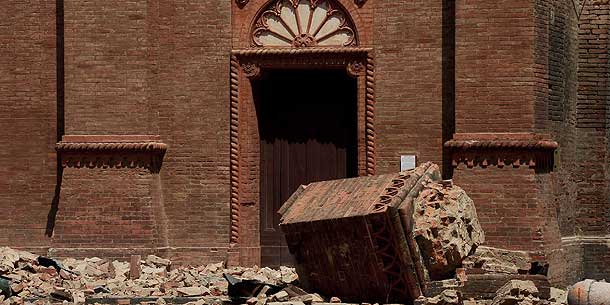 Martini befand sich mit zwei Feuerwehrleuten in der Kirche, um die tiefen, vom Erdstoß am 20. Mai verursachten Risse zu kontrollieren, als die Erde am Dienstag erneut bebte. Der Pfarrer wurde von einer Steinplatte getroffen, die sich von der Decke der Kirche gelöst hatte. Die beiden Feuerwehrleute konnten sich retten.