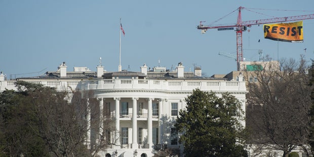 Die Umweltorganisation Greenpeace hat auf einem Kran über dem Weißen Haus am Mittwoch ein Banner mit der Aufschrift "Resist" ("Wehrt euch") angebracht. "Greenpeace-Aktivisten wollen ein Zeichen von Liebe und Fortschritt setzen, um dem Hass und der Ignoranz von Donald Trump im Weißen Haus etwas entgegenzusetzen. Schließt euch dem Widerstand an!", heißt es auf der Website der Umweltorganisation.