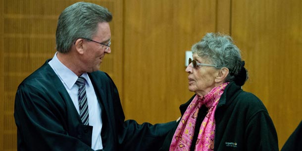Suder nahm das Urteil äußerlich ungerührt entgegen, die Augen mit einer Sonnenbrille verdeckt. Die heute 80-Jährige soll einst den Revolutionären Zellen (RZ) angehört haben, einer deutschen linksextremistischen Terrorgruppierung. Sie konnte den Gerichtssaal nach dem Urteil auf freiem Fuß verlassen. Der Haftbefehl wurde außer Vollzug gesetzt, da Suder bereits mehr als zwei Drittel der Gefängnisstrafe in der Untersuchungshaft abgesessen hat. Rund 100 Sympathisanten feierten sie anschließend vor dem Landgericht.
