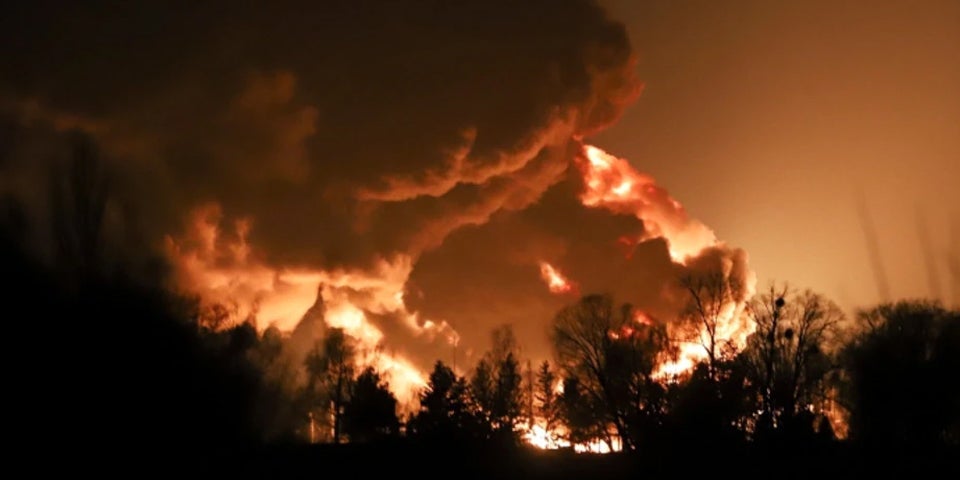 Ein Öldepot außerhalb von Kiew wurde von Raketen getroffen und in Brand gesetzt.