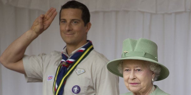 Am Montag war Bear Grylls auch der Moderator bei einer Ehrung von 600 Pfadfindern im Windsor Castle durch die Queen. Grylls ist der britische "Chief Scout", also der oberste Pfadfinder Englands.