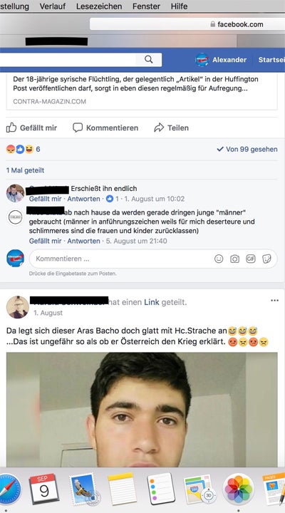 "Vor ungefähr vier Monaten haben zwei Flüchtlingsgegner und AfD-Wähler eine Hassgruppe über mich auf Facebook erstellt.