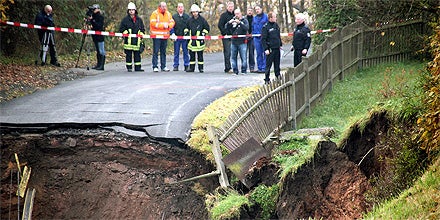 Am Kraterrand rutschte unterdessen weitere Erde nach. "Es bröckelt ein wenig", sagte Polizeisprecher Fred Jäger. Reinholz zufolge droht auch eine Garage, die unmittelbar an der Bruchkante steht, in das Loch abzurutschen. Strom, Wasser und Gas seien abgestellt worden, um keine weiteren Gefahren zu erzeugen.