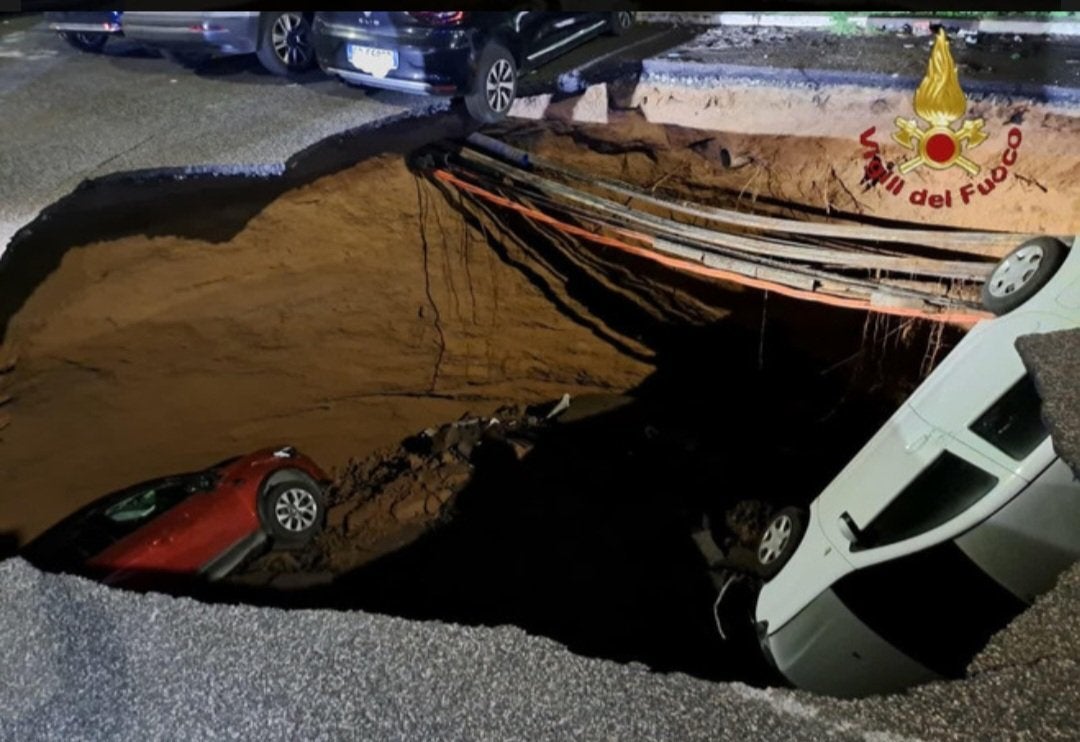 Kurz nach Mitternacht öffnet sich in einem Wohnviertel in Rom plötzlich die Erde: Ein riesiges Erdloch hat im Südosten der italienischen Hauptstadt die Straße aufgerissen und zwei geparkte Autos verschlungen. Das rund zehn Meter tiefe Loch mit einem Durchmesser von ebenso rund zehn Metern tat sich am Donnerstag gegen 1.00 Uhr auf, wie italienische Medien unter Berufung auf die römische Lokalpolizei berichteten.