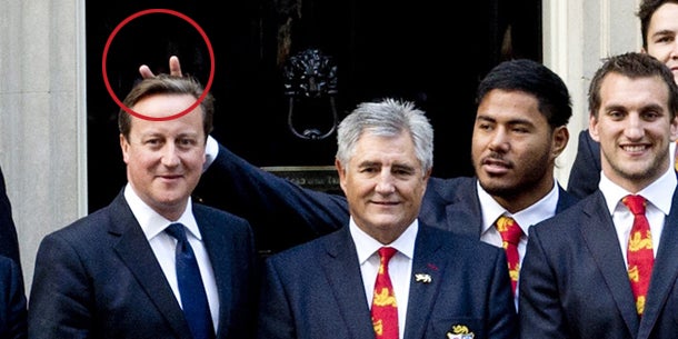 Gerade als die Fotos gemacht wurden, hielt er zwei Finger hinter dem Kopf des Premiers hoch und verpasste ihm Hasenohren.