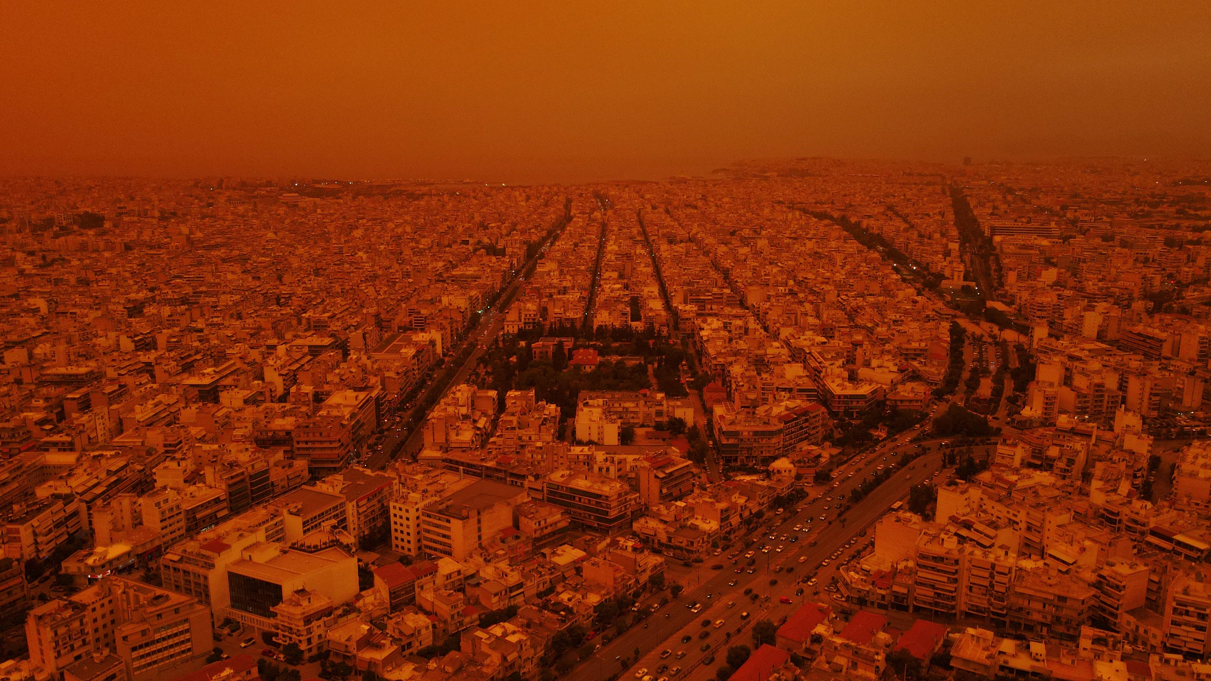 Im Laufe des Tages färbte sich der Himmel über Athen wegen des Staubs tiefrot und sorgte neben Atembeschwerden auch für eine schummrige, bedrückende Atmosphäre.