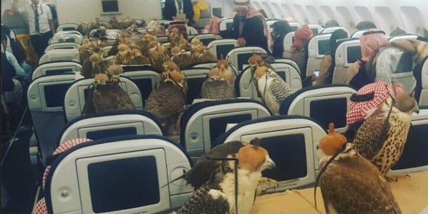 Ungewöhnlich ist es nicht, dass Mitglieder der saudischen Königsfamilie ihre Falken mit in den Urlaub nehmen, um auch dort jagen zu können. Viele Fluggäste führen hier neben dem normalen Handgepäck auch einen Vogel mit sich.