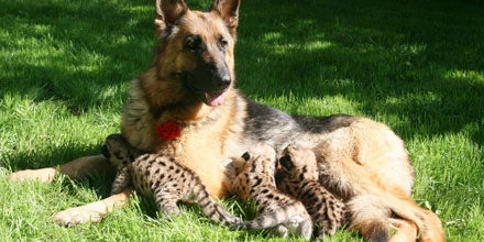 Ungewöhnliche Mutterliebe in einem russischen Zoo: Drei wenige Tage alte Puma-Junge wachsen im Tierpark der Wolgastadt Samara in der Obhut von Schäferhündin Chelsea auf. Ansonsten hätte die Gefahr bestanden, dass die leibliche Mutter der Raubkatzen ihren Babys etwas zuleide tue. Nun gediehen Sternchen, Latti und Avatar prächtig, berichteten russische Medien am Mittwoch.