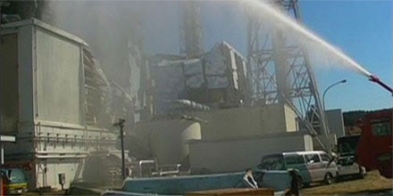 Unter Wasserwerfer-Beschuss steht nach wie vor auch Reaktor 4. Er ist der gefährlichste von allen: Hier lagert Plutonium in den Abklingbecken, von hier aus geht die größte Strahlung aus.