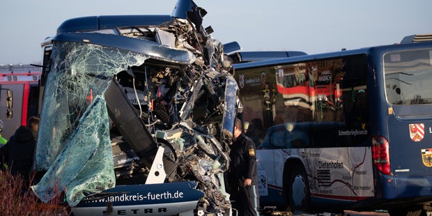Bei einem Frontalzusammenstoß von zwei Schulbussen nahe Ammerndorf (Landkreis Fürth) in Bayern sind mehrere Kinder schwer verletzt worden. Mindestens vier Menschen seien am Donnerstagnachmittag mit schwerem Gerät von der Feuerwehr aus den Trümmern befreit worden, sagte ein Polizeisprecher. Die Lage sei wegen der vielen Verletzten unübersichtlich. Mehrere Rettungshubschrauber waren im Einsatz.