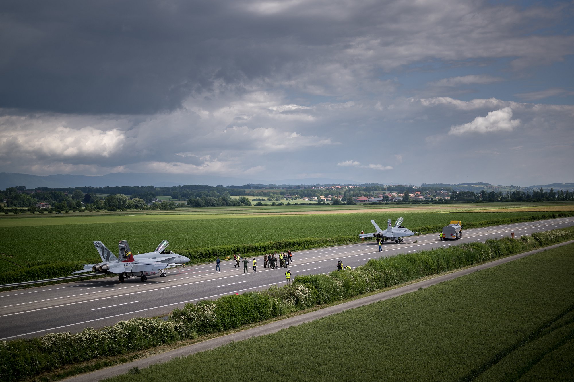 Die Piloten der F/A-18 hätten perfekte Landungen hingelegt, sagte er. Die Maschinen hatten eine Landegeschwindigkeit von rund 260 Kilometer pro Stunde. Der Autobahnabschnitt bei Payerne südlich des Neuenburgersees war auf mehreren Kilometern seit dem Vorabend gesperrt gewesen. Die Leitschienen waren entfernt worden und die Strecke wurde vor dem Start mehrfach gesäubert, Kanonenböllerschüsse sollten Vögel verscheuchen.