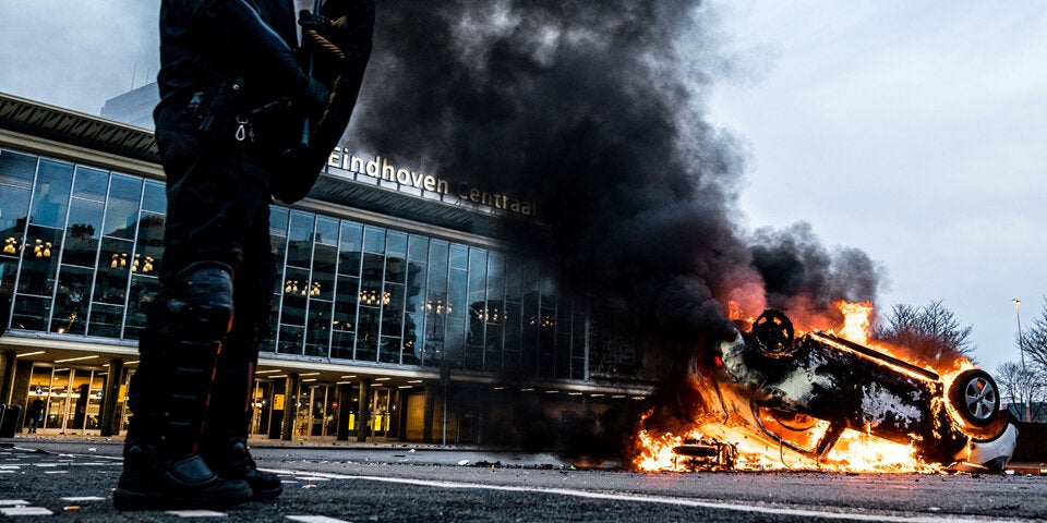 Die verschärften Coronamaßnahmen und die neue Ausgangssperre haben in mehreren niederländischen Städten Krawalle ausgelöst. Kurz vor Beginn der Ausgangssperre um 21 Uhr am Sonntag kam es nach Angaben der Polizei in etwa zehn Städten zu Ausschreitungen. Polizisten wurden mit Feuerwerkskörpern und Steinen angegriffen. In Den Haag wurden Autos in Brand gesteckt. Unruhen wurden unter anderem auch aus Tilburg, Enschede, Venlo, Roermond, Breda, Arnheim und Apeldoorn gemeldet.