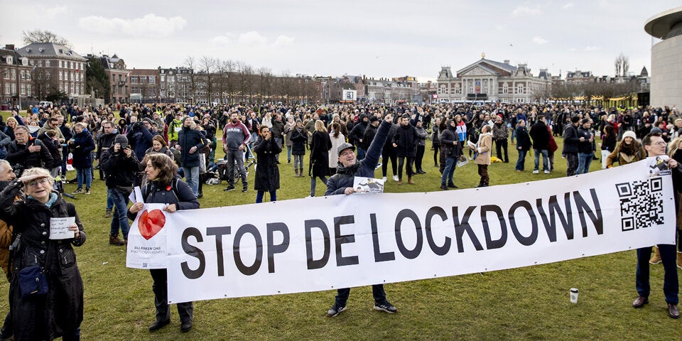 Zuvor hatte die Polizei bereits in Amsterdam und Eindhoven mit Wasserwerfern verbotene Demonstrationen beendet. Hunderte Demonstranten hatten nach Polizeiangaben gegen die Corona-Maßnahmen protestiert und die Polizei mit Feuerwerkskörpern und Steinwürfen angegriffen. In Eindhoven wurden Geschäfte geplündert und Brände gelegt.