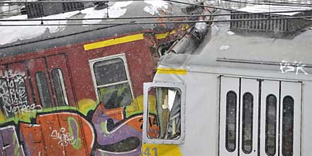 Aufpralls schob die beiden ersten Waggons im 45-Grad-Winkel nach oben.