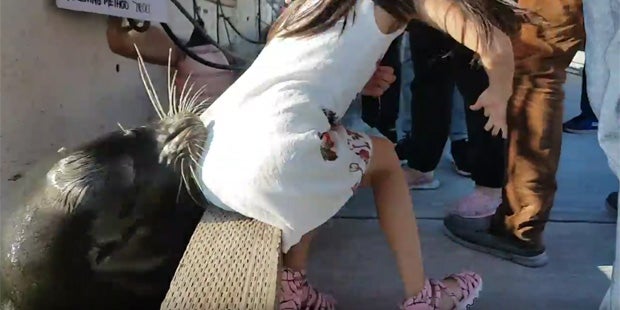 Ein Seelöwe hat im Hafen der kanadischen Stadt Richmond ein kleines Mädchen gepackt und unter Wasser gezerrt. Ein Helfer - vermutlich ein Verwandter - sprang sofort hinterher und rettete die Kleine, wie auf einem millionenfach geklickten Internetvideo zu sehen ist. Beide kamen mit dem Schrecken davon.