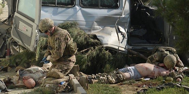 Im Mitteilungsdienst Twitter bekannten sich die radikalislamischen Taliban zum Attentat. Der Attentäter hatte ein mit Sprengstoff beladenes Fahrzeug in einen Konvoi gelenkt, der zum Flughafen unterwegs war, teilten die afghanischen Sicherheitsbehörden mit. Demnach wurden bei dem Anschlag zwei Militärfahrzeuge und 17 weitere Fahrzeuge beschädigt. Mindestens 13 afghanische Zivilisten seien verletzt worden.