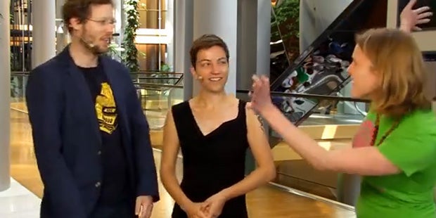 Die Beiden Jung-Politiker Jan Philipp Albrecht und Ska Keller sitzen schon seit längerem für die deutschen Grünen im EU-Parlament und versuchen mittels YouTube-Videos ihre Arbeit zu vermitteln. Neu gewählt wurde Terry Reintke, die 26-Jährige legt in dem Video einen „flippigen“ Auftritt hin. „Was? Geil! Sauber!“, freuen sich die Albrecht und Keller über die neue Kollegin.