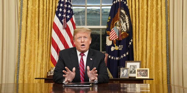 - Trump will weiter nicht ausschließen, wegen der von ihm herbeigeredeten Krise einen „nationalen Notstand“ auszurufen: Dann könnte er das Militär die Mexiko-Mauer bauen lassen. Doch auch würde er einen Aufstand innerhalb seiner eigenen Partei riskieren (die Senatoren Mitt Romney oder Marco Rubio etwa sind strikt dagegen) – und einen mehrjährigen Kampf vor Gerichten provozieren. Auch politisch gleicht das Ansinnen Harakiri: Niemand außer Trump ortet einen nationalen Notstand, nachdem die Zahlen illegaler Grenzübertritte in den letzten Jahren gefallen sind.