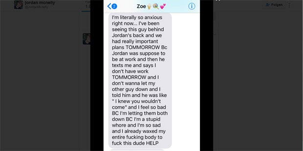 Bleibt nur zu hoffen, dass es der echten Zoe eine Lehre war. Künftig sollte sie ihre Freunde nicht mehr betrügen oder zumindest Textnachrichten an die richtigen Personen schicken.