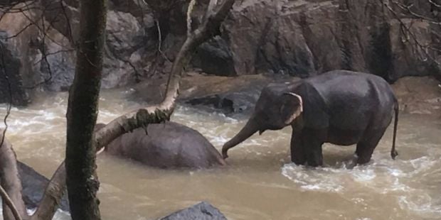 Die Wildhüter kümmerten sich zunächst um die überlebenden Elefanten, die auf einem rutschigen Felsvorsprung über den Fluten standen und offenbar vergeblich versucht hatten, einem Artgenossen zu Hilfe zu kommen. Später entdeckten die Wildhüter die Kadaver der sechs Elefanten.