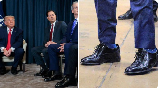 Lebt US-Außenminister Marco Rubio auf zu großem Fuß? In Online-Medien gehen derzeit Bilder viral, die Rubio in übergroßen Schuhen zeigen. Laut "Wall Street Journal" könnte dafür Präsident Donald Trump verantwortlich sein. Er habe sein Kabinett mit Schuhen seiner bevorzugten Marke Florsheim ausstatten lassen, hatte das Blatt berichtet - und offenbar wage es niemand, die Trump-Schuhe nicht zu tragen.