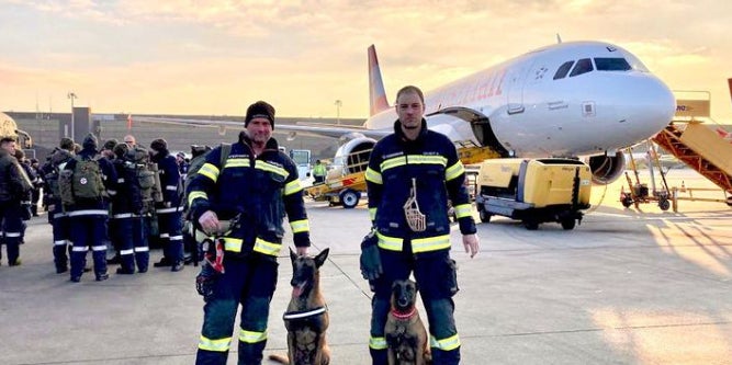 Spürnasen. Die Erdbebenopfer liegen tief unter Trümmern. Um sie zu finden, sind Hunde wichtig. Etwa der Terrier "Arwed" oder der Riesenschnauzer "Bo": beides Feuerwehr-Rettungshunde aus Wien.