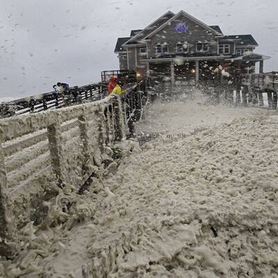 Hurrikan "Sandy" kündigte sich mit riesigen Wellen an.