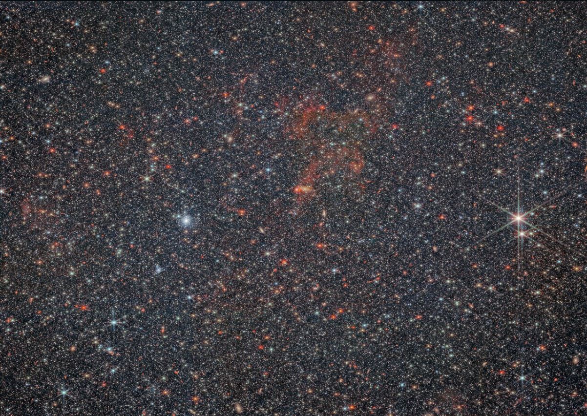 Astronomische Sensation: Ein klarer Blick auf die Galaxie NGC 6822 "Barnards Galaxie", 1,5 Millionen Kilometer entfernt von uns. Möglich macht es das James Webb Teleskop. Auf diesem Bild sehen die Wissenschaftler Sterne, die bisher unbekannt waren, so die Europäische Weltraumagentur ESA.
