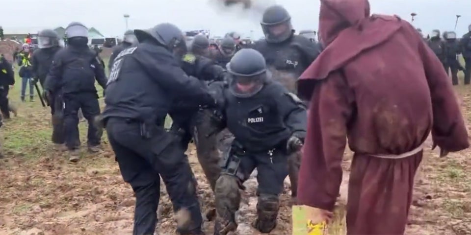 In einem Video, das auf Twitter geteilt wurde, sieht man nun wie Klima-Aktivisten die deutsche Polizei verhöhnen. Während die Einsatzkräfte tief im tiefen Schlamm stecken bleiben, werden sie von verspottet, umgestoßen und sogar mit Dreck beworfen.