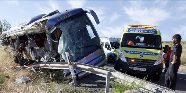 Beim schwersten Busunglück in Spanien seit Jahren sind am Montag neun Menschen ums Leben gekommen. Die meisten der übrigen 21 Insassen seien beim Unfall etwa 110 Kilometer nordwestlich von Madrid schwer verletzt worden, berichteten spanische Medien unter Berufung auf Polizei und Rettungsdienste. Das Fahrzeug sei auf der Landstraße N-403 bei Tornadizos in einer Kurve aus zunächst ungeklärter Ursache von der Fahrbahn gekommen und habe sich überschlagen.