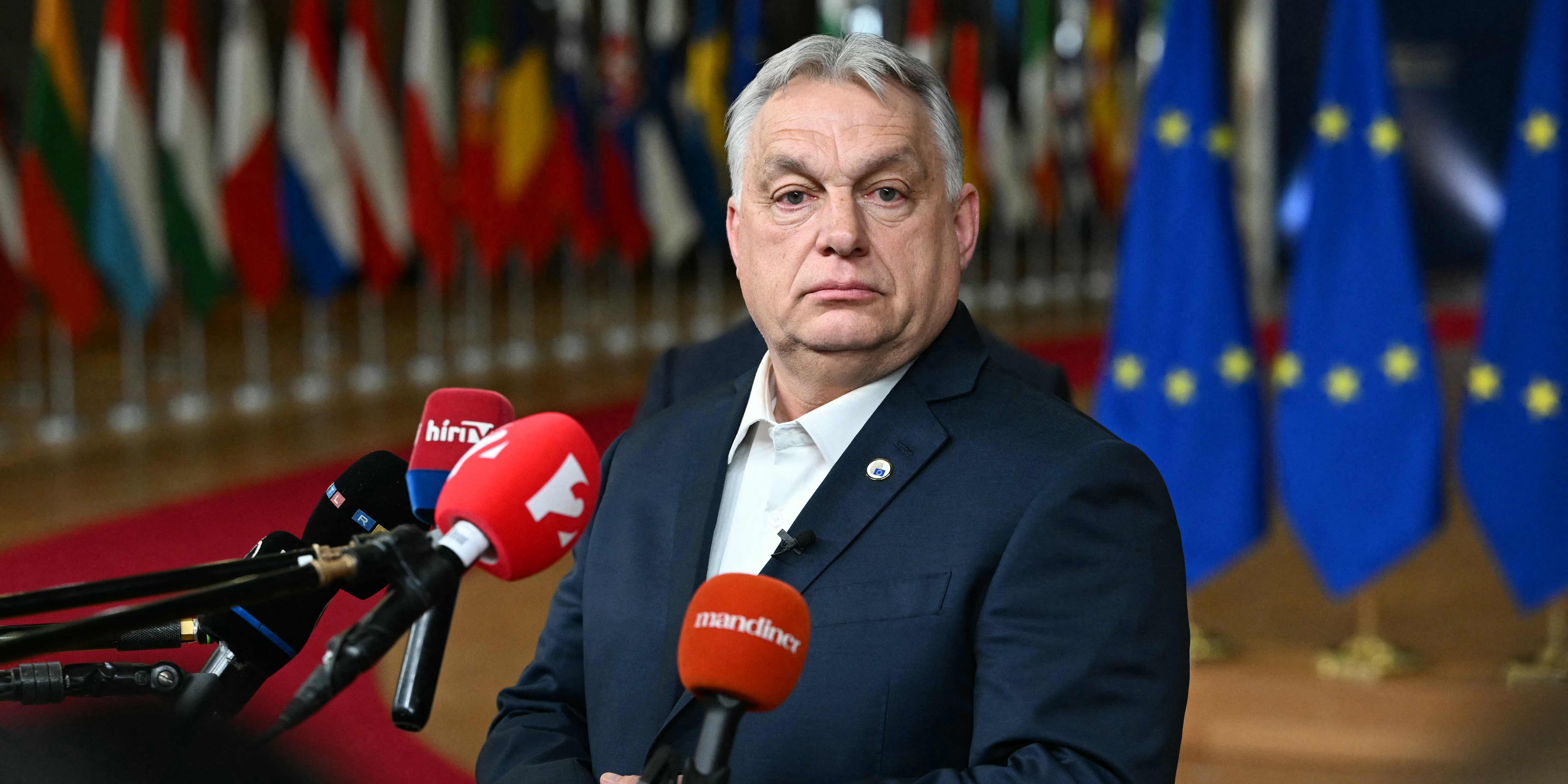 Orbáns Blockade verhindert weiter einen Ukraine-Kredit. Umfragen zu den Parlamentswahlen in Ungarn sahen Orbáns Partei zuletzt hinter der seines Herausforderers Péter Magyar.