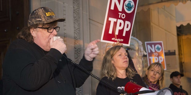 Moores neuer Film "Where To Invade Next" feierte auf dem Festival in Berlin seine Europapremiere. Er selbst kam aber nicht nach Berlin. Die Ärzte hätten ihm nach einer Lungenentzündung noch nicht erlaubt zu fliegen, sagte er im Video. Dafür sei er stolz, dass wahrscheinlich das erste Mal in der Geschichte des Festivals jemand seinen Film im Bademantel vorstelle. "Das zählt ja vielleicht auch etwas." In seinem neuen Film marschiert Moore als "Ein-Mann-Armee" mit amerikanischer Flagge in verschiedene Länder ein, um die besten Ideen von dort mit in die USA zu nehmen.