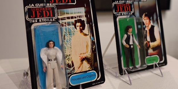 Eine Auktion von "Star Wars"-Sammlerstücken in New York hat mehr als 500.000 Dollar (etwa 450.000 Euro) eingebracht. Teuerstes Stück war eine Packung mit sieben Film-Actionfiguren von 1980, die für 32.500 Dollar versteigert wurde, wie Sotheby's am Freitag (Ortszeit) mitteilte.