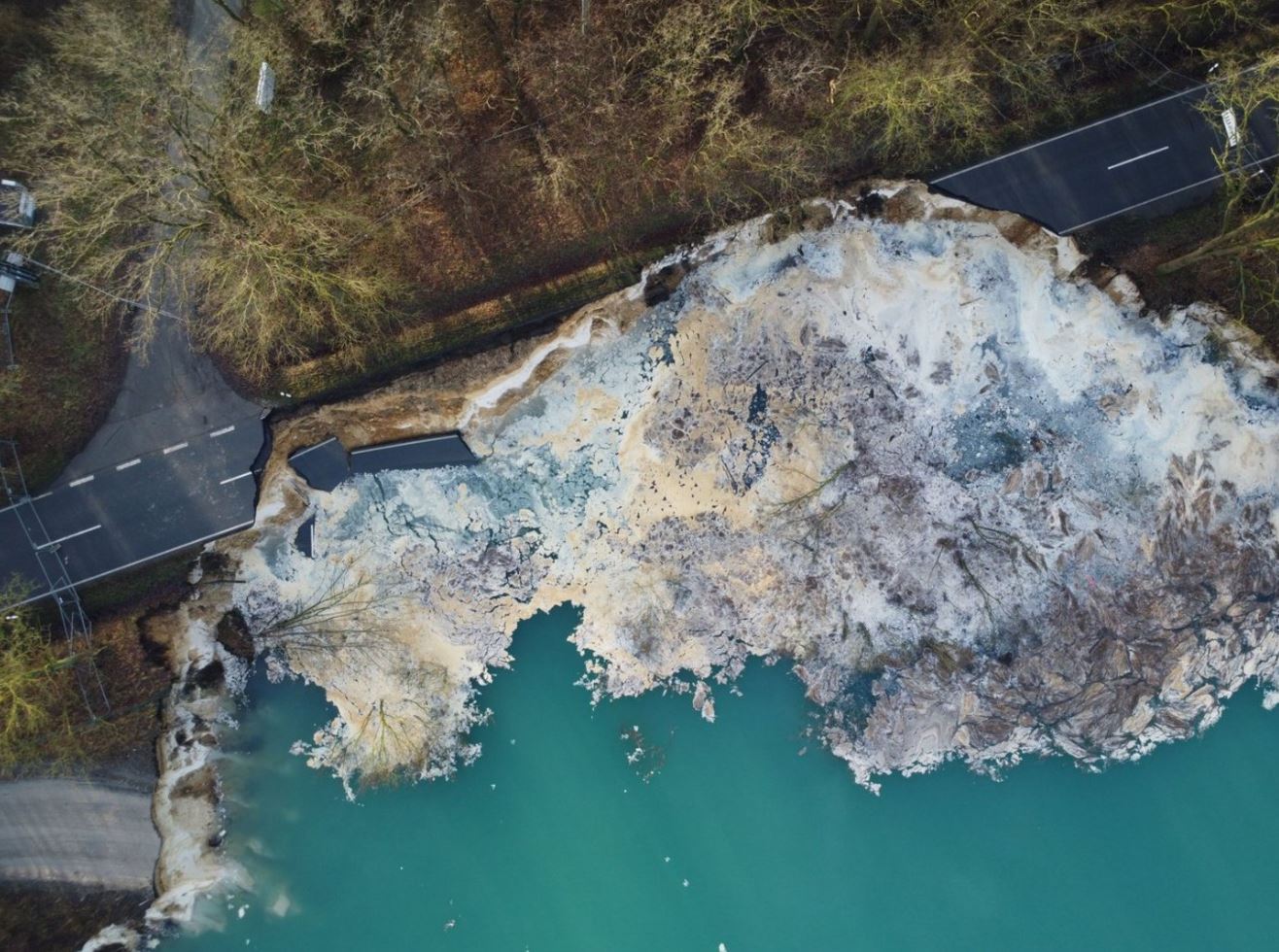Autofahrer alarmierten nach den auffälligen Bewegungen den Notruf. Polizei und Feuerwehr sperrten die Straße kurze Zeit später vollständig ab. Am Abend brach der betroffene Abschnitt schließlich ab und rutschte in die Grube.