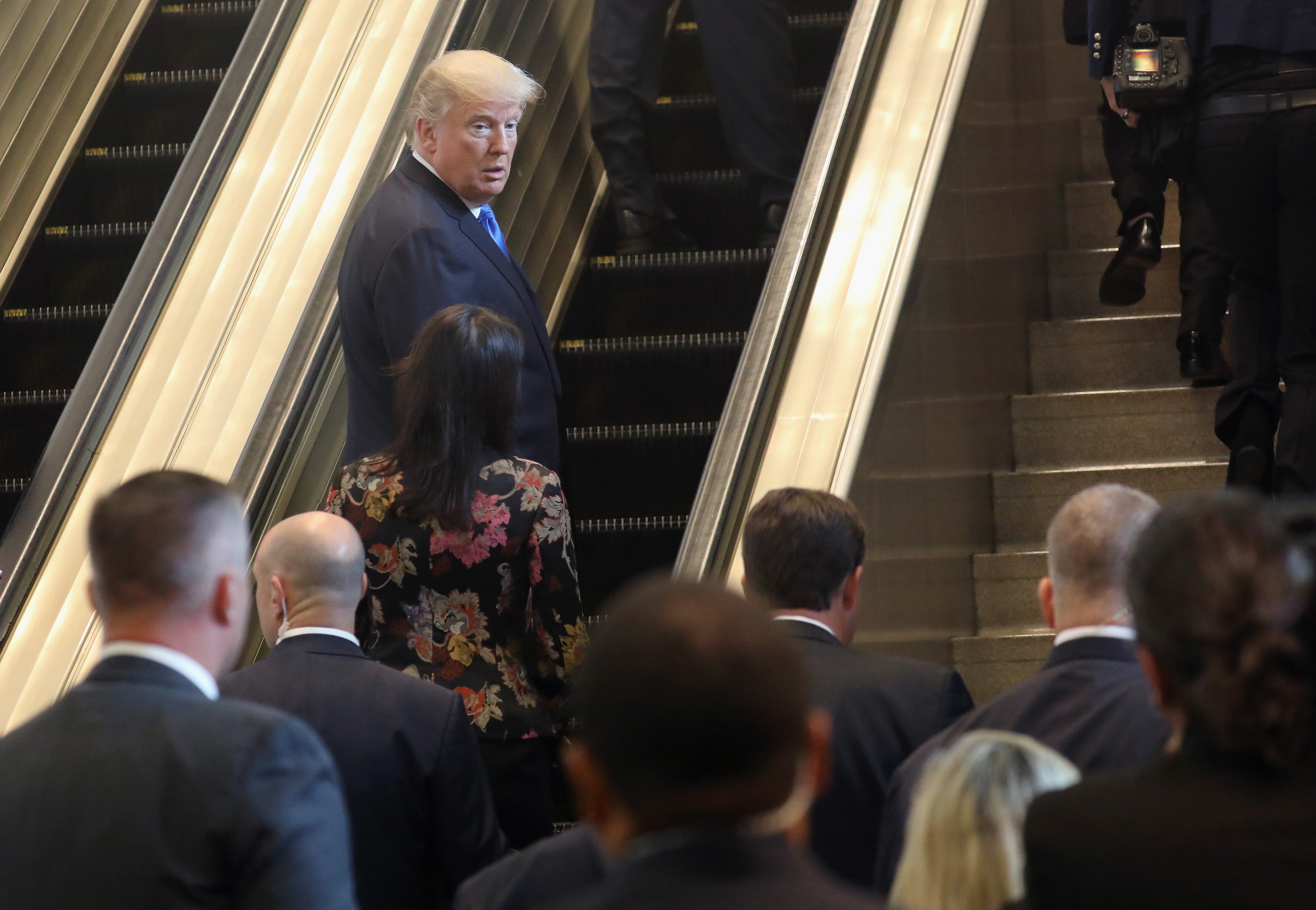 Auch mit der Rolltreppe habe es keine Probleme gegeben, hieß es aus den Kreisen weiter. Sie habe angehalten, weil ein Notfallknopf gedrückt worden sei - wohl von einem Mitglied der Entourage von Trump.