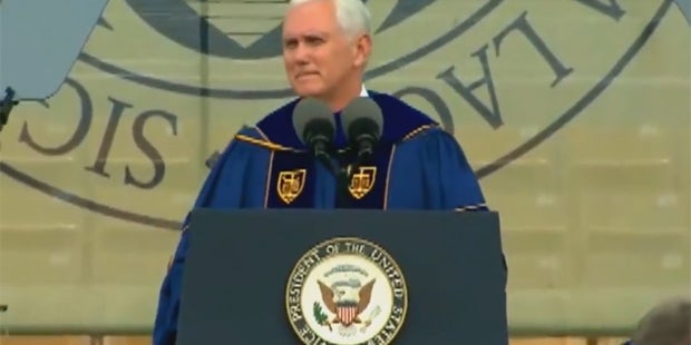 Einige ihrer rund 2.000 Kommilitonen jubelten ihnen zu, während andere sie ausbuhten. Die Universität Notre Dame in South Bend ist eine der angesehensten katholischen Hochschulen in den USA. Pence verurteilte in seiner Rede die "politische Korrektheit" an US-Hochschulen, die einer "Unterdrückung de Redefreiheit" gleichkomme.