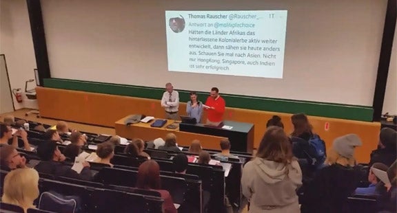 Professor wird vor der Lehrveranstaltung mit eigenen Tweets konfrontiert.