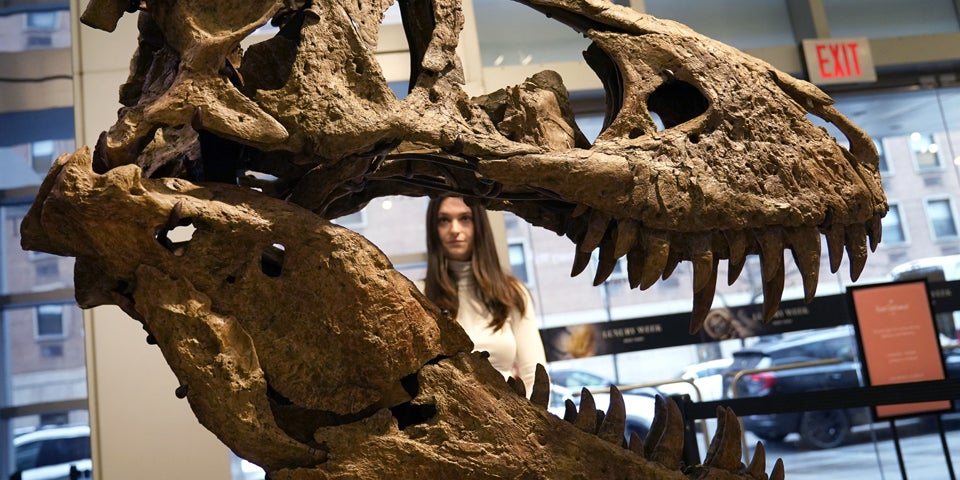Der Schädel eines Tyrannosaurus rex ist bei einer Auktion in New York für rund sechs Millionen Dollar (etwa 5,7 Millionen Euro) versteigert worden. Für 6,1 Millionen Dollar habe ein anonymer Bieter am Freitag den Zuschlag erhalten, teilte das Auktionshaus Sotheby's mit. Zuvor hatten die Experten von Sotheby's bis zu 20 Millionen Dollar erwartet.